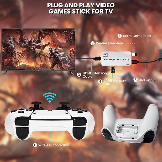The M15 transforms your TV into a true arcade machine thanks to its ultra-smooth HDMI connection. Ready to play right out of the box, it comes pre-loaded with thousands of retro games and supports a wide range of emulators for maximum compatibility. Supplied with two enhanced wireless controllers , it offers an even more stable and responsive experience, perfect for two-player gaming. Whether with family, friends, or to relive your favorite classics, the M15 guarantees hours of fun on the big screen.